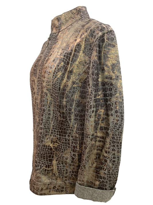 Large Chico's Women's Reversible Full Zip Jacket Print Gray Pockets
