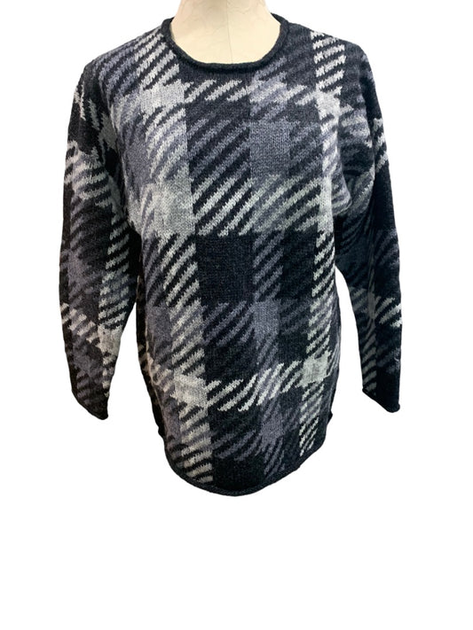 Small Peite Northern Isles Women's Gray Plaid Knitted by Hand Wool Sweater