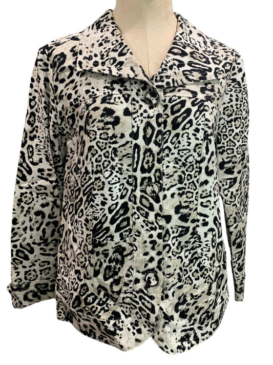 Large (12) Chico's Women's Animal Print Cotton Canvas White Black Brown