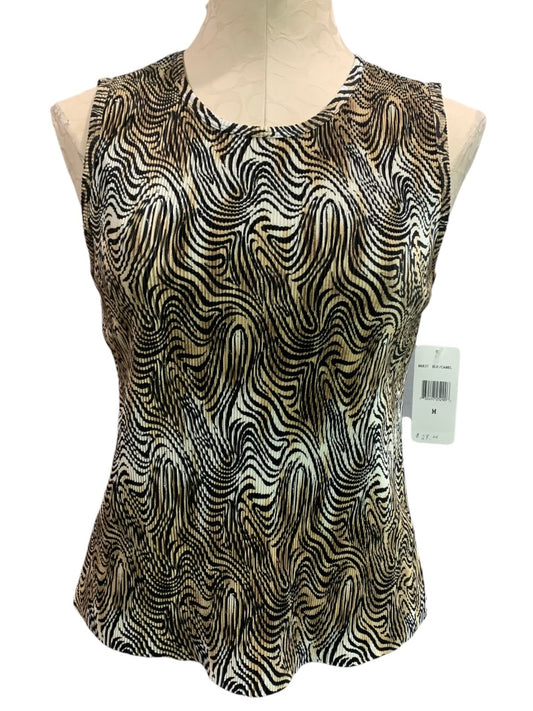 Medium Plisse Women's 1990s Vintage Camel Black Accordian Stretch Tank Sleeveless Blouse
