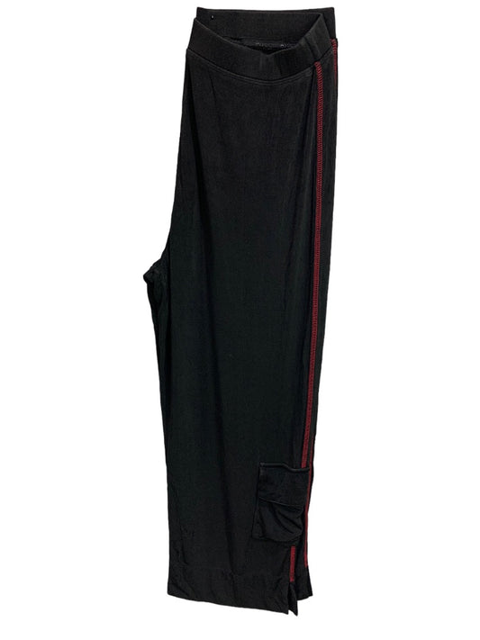 Large Chico's Travelers Women's Black Red Contrast Stitch Pull On Pants Cargo Style Travel Knit