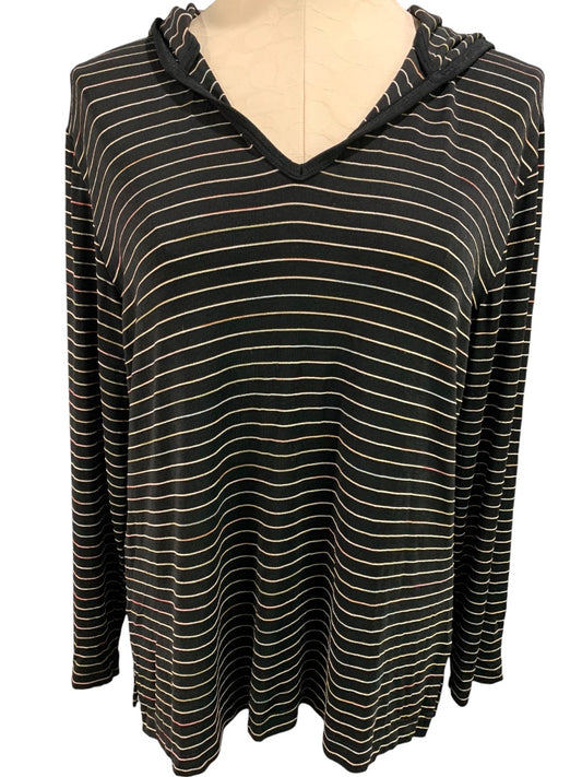 Medium Chico's Travelers Black Striped Pullover Hooded Top Travel Knit