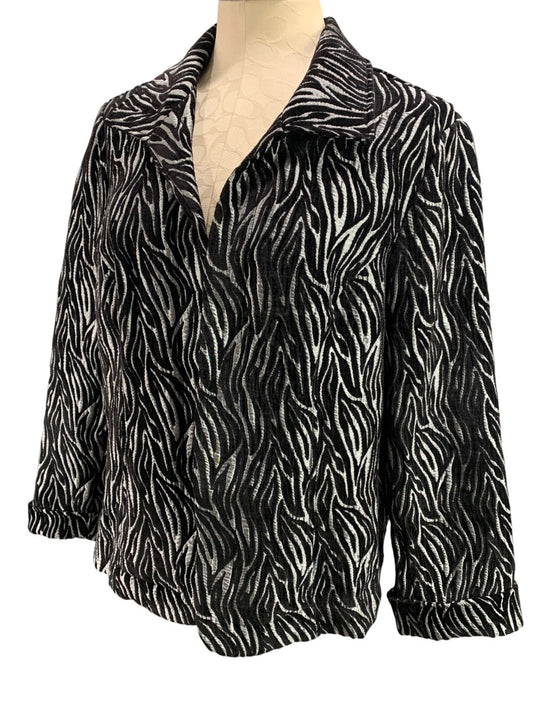 Size 12 Chico's Black Silver Women's Jacket Open Front Lagenlook