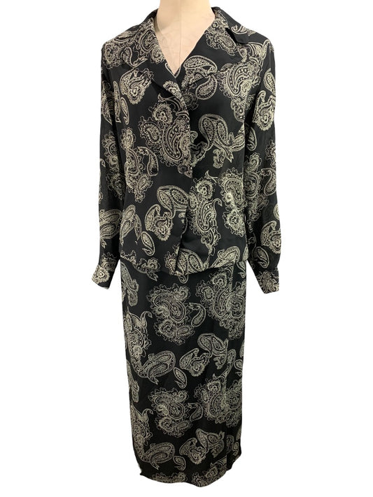 Size 8 Chaus Women's Vintage 1980s Office Wear Set Blouse and Skirt Black White