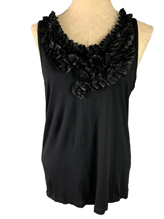 Large Status by Chenault Women's New Black Ruffle Neck Tank Top Sleeveless
