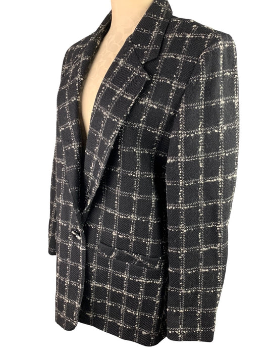 Size 10 Alfred Dunner Women's Wool Black Pattern Open Single Button Blazer Coat Vintage 1990s