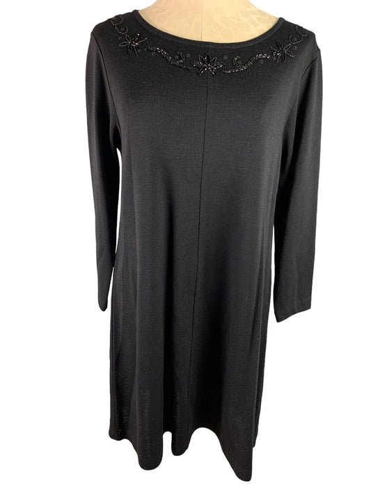 Medium Liz Claiborne Dresses Vintage 1990s Black Wool Blend Sweater Dress Beaded Neckline