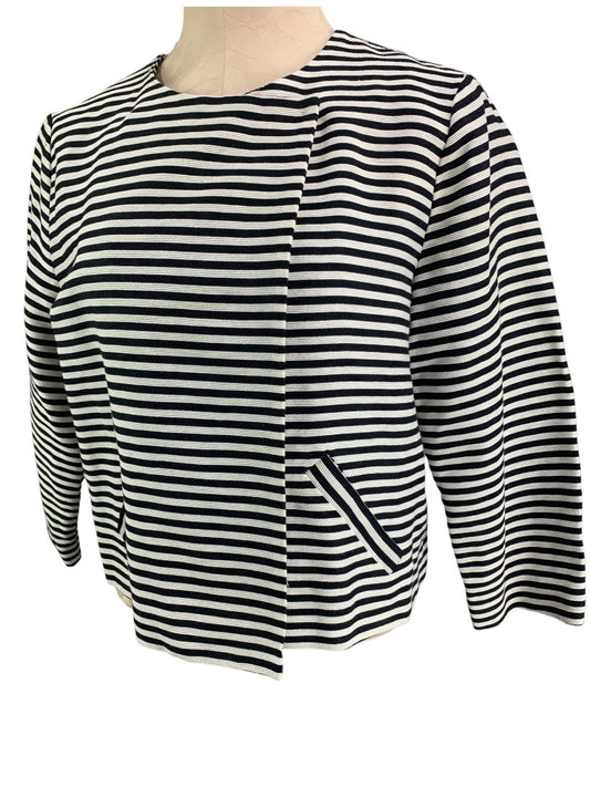 Medium (8/10) Chico's New Black White Stripe "Sarah" Jacket Travel Collection