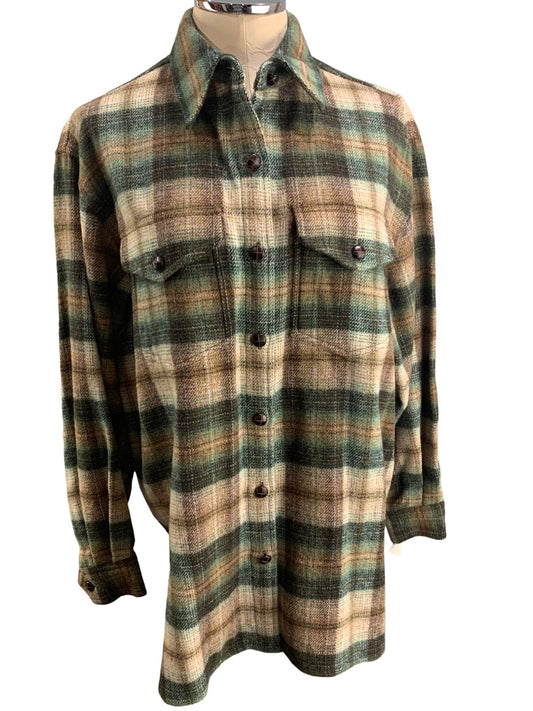 Small Russ Sport Oversize Women's Vintage Y2K Plaid Wool Blend Shacket Shirt Jacket