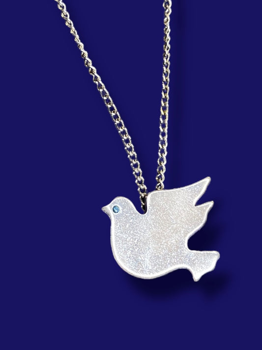 Vintage Silvertone Dove Necklace 18" Chain 18mm Pendant Spring Clasp