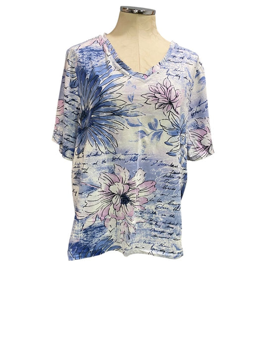 1X Liz & Me Womens Floral Print V-Neck Tshirt Short Sleeve