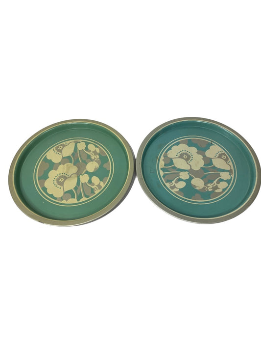 MidCentury Set of 2 Metal Trays Decorative Floral 12.5" Diameter Turquoise