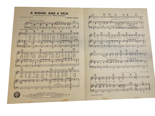 A Bushel and a Peck Guys and Dolls 1950 Sheet Music F Loesser