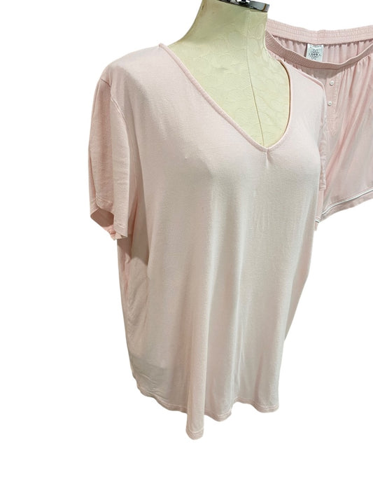 Large Serra Womens Pink 2 Piece Cooling Pajamas Shorts Tshirt Pockets