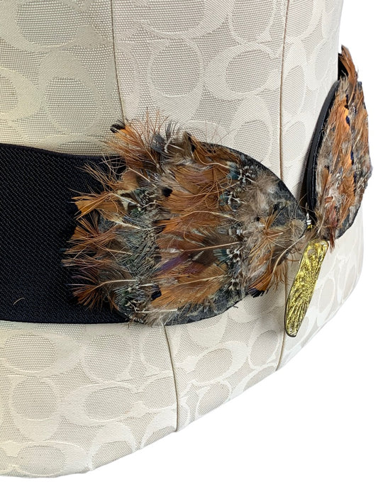 Vintage 3" Wide Women's Elastic Belt Feather Embellished Goldtone Medallion 33-40"