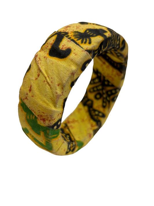 Fabric Wrapped African Print Bangle Bracelet Yellow Black Green 2.5" Diameter