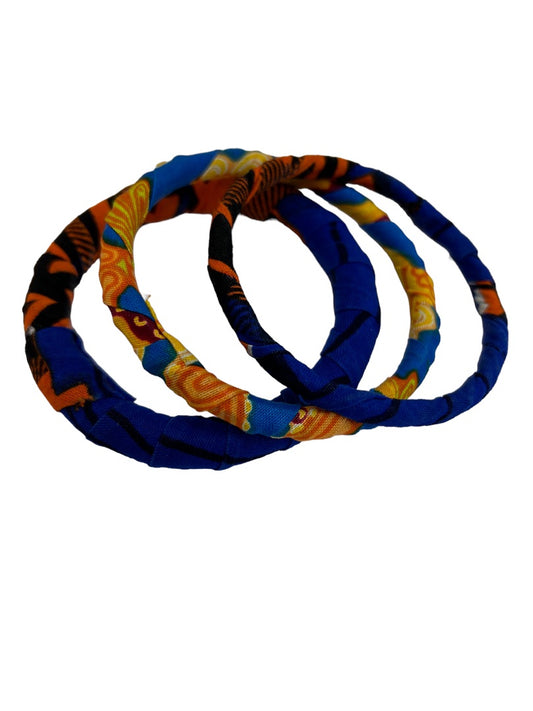 Set of 3 Fabric Wrapped Bangle Bracelets Blue Muliticolor 2.5" Diameter