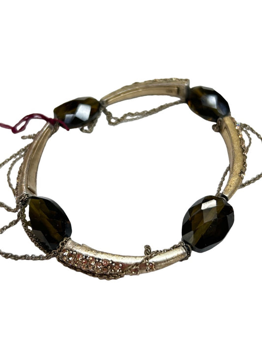 Signed KC Stretch Bracelet Goldtone and Smokey Beads Delicate Chain Detail