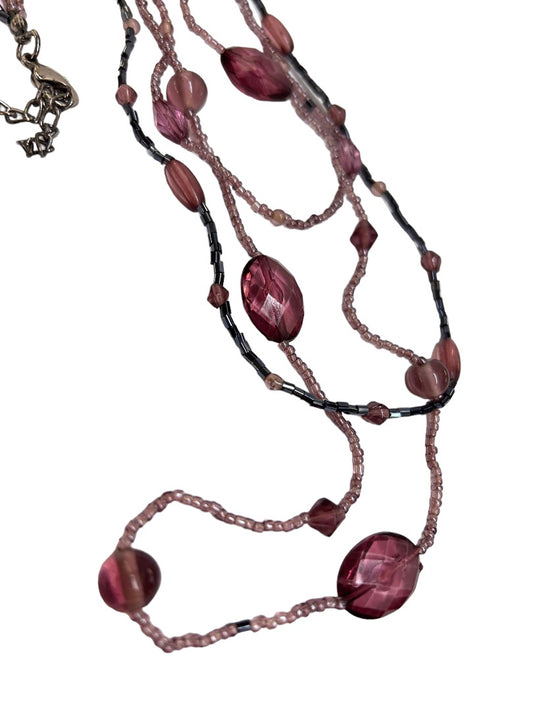Smokey Purple and Gray Triple Strand Beaded Acrylic Necklace 36"