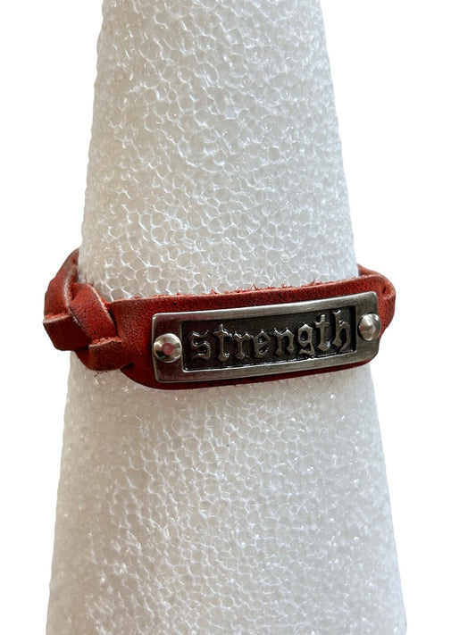 Braided Red Leather Bracelet Snap Closure "Strength" 7" or 7.5"