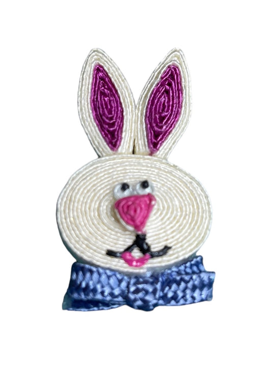 Rolled Straw Rabbit Head Easter Bunny Pin 2"