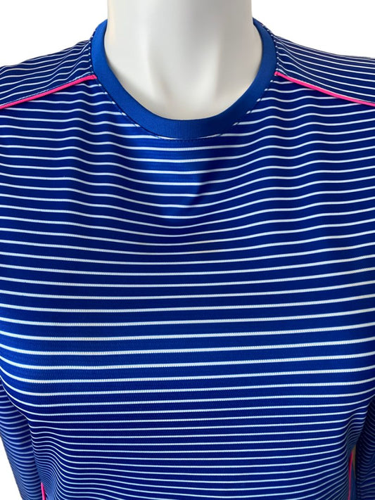 Large Reel Legends Freeline Blue Striped Long Sleeve Fishing Shirt Pink White
