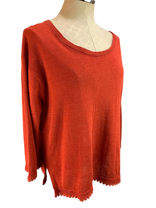 Small J.Crew Women's 100% Linen Sweater Reddish Orange G5362 Pom Pom Trim
