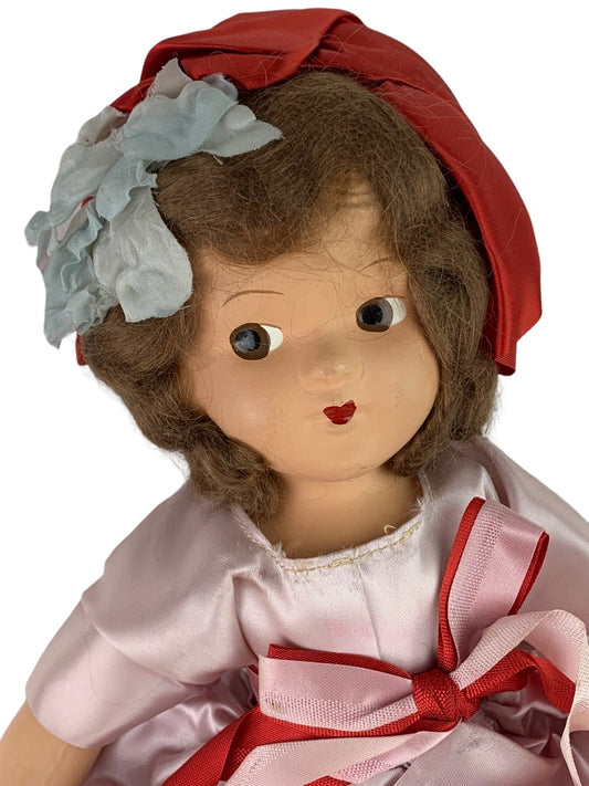 Vintage Doll Salvage Condition For Parts Red Satin Dress Articulated 14"