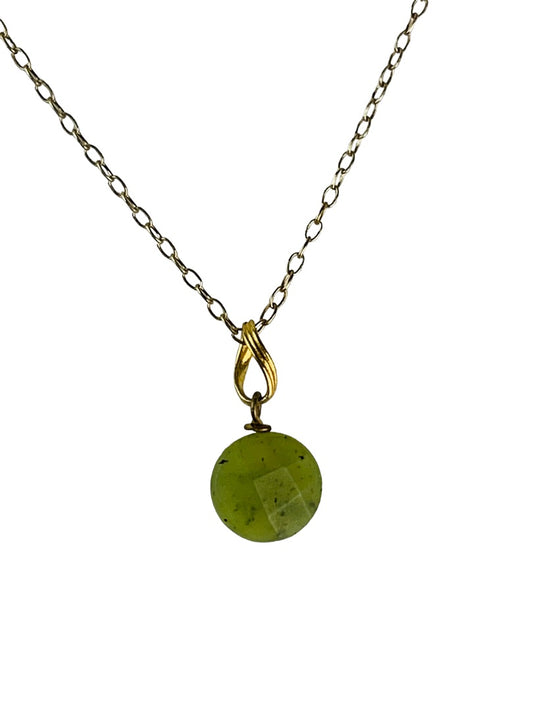 Delicate Goldtone 18" Necklace Green Faceted Removable Stone Pendant