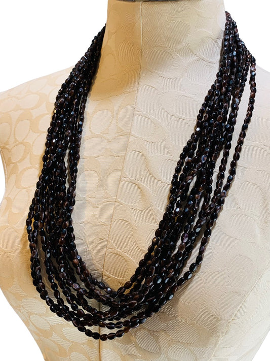 Statement 58" Necklace Brown Polished Stone Beads Hook Closure 5 Strand