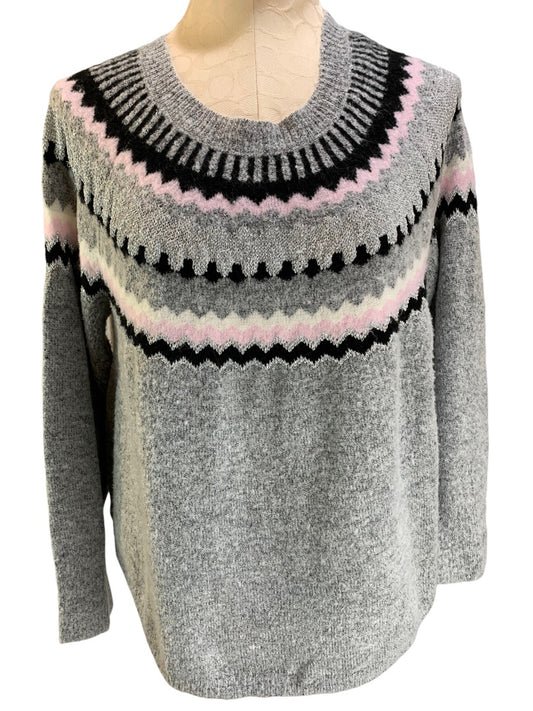 Small Cliche Pink Gray Women's Pullover Loose Fit Sweater Silver Threads