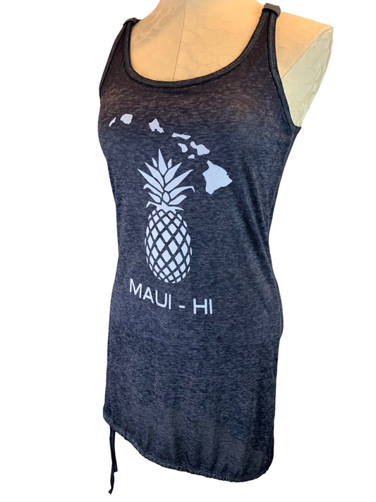Small Aloha Lightweight Coverup Sundress Pineapple Navy Blue Women's "Maui-Hi"