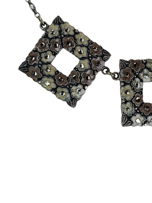 Anne Koplik Designs USA Mede Quality Necklace Silvertone Statement Necklace Enameled Squares 18"