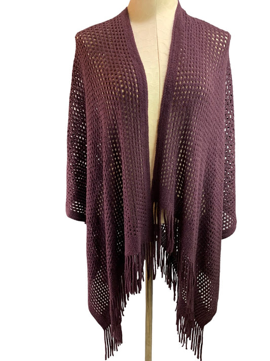 Loose Knit Fringed Shawl Cardigan Women's Eggplant Dark Purple