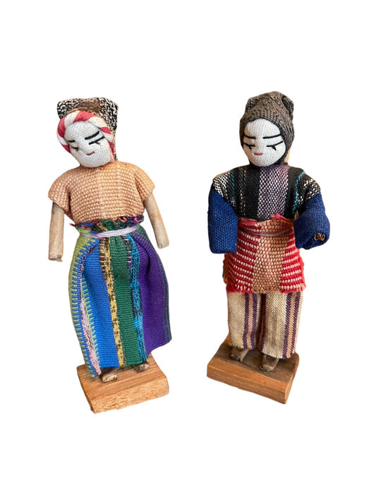 Set of 2 Peruvian Thread Dolls Traditional Dress Hand Made 5.5" h