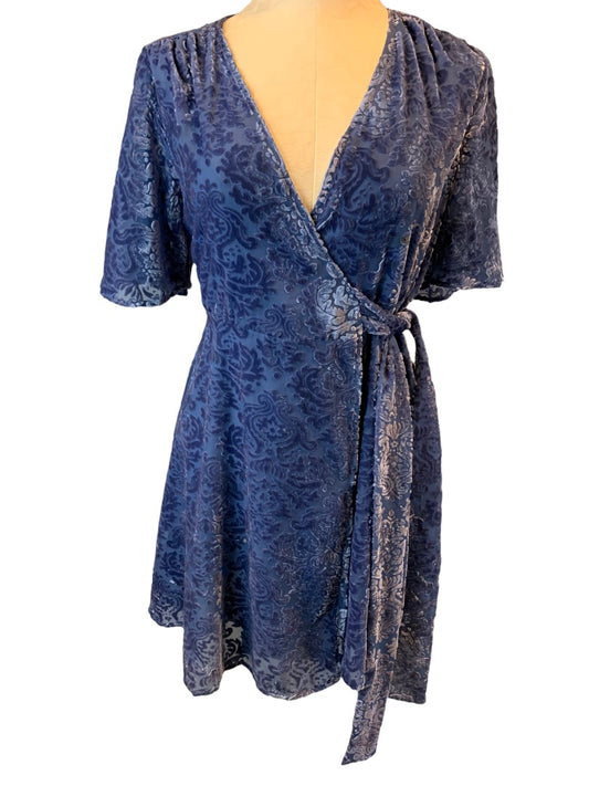 Small Mi Ami Nordstrom Blue Velvet Wrap Dress Short Sleeve