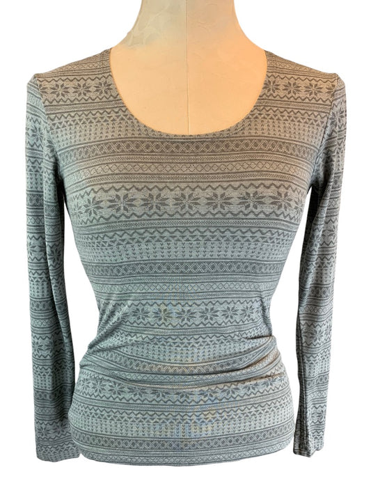 Small 32 Degrees Heat Women's Gray Fair Isle Print Scoop Neck Base Layer Shirt