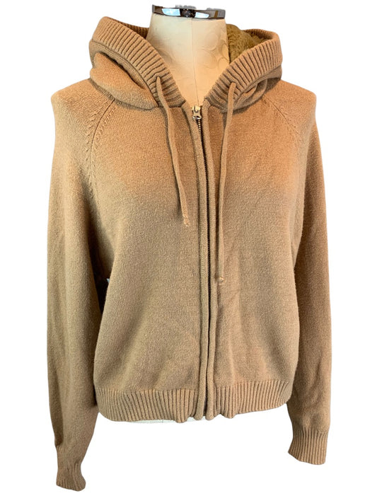 Large Central Park West Women's Camel Color Full Zip Hooded Sweater