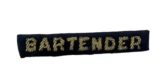 Vintage Gemsco Gold Boullion Embroidered Black Bartender Rectangular Bar Brooch