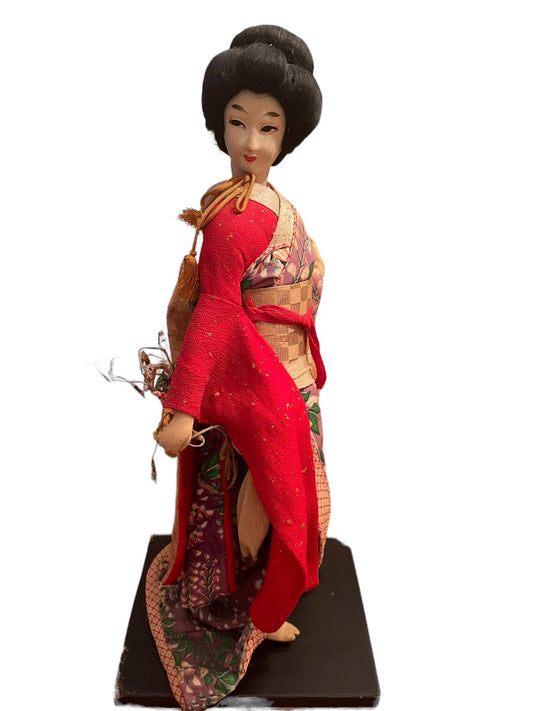 Japanese Geisha Doll Kimono Branch and Leaves 16.5"