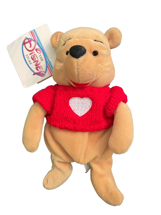 Disney Store Winnie The Pooh 8" Red Sweater Plush Beanbag