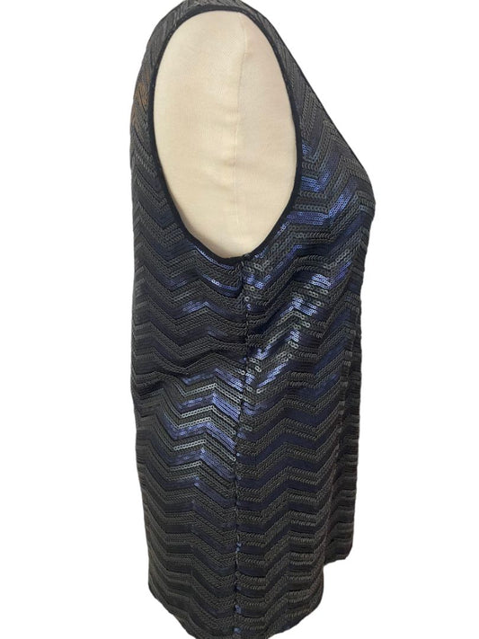 Medium Etcetera Navy Black Sequin Tank Top Evening Elegant