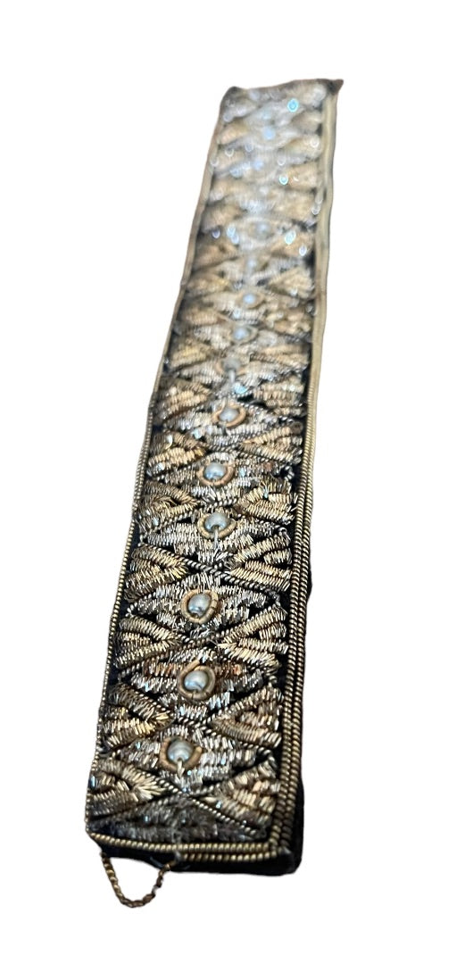 Vintage Embroidered Silver Gold Faux Pearl Felt Lined Made in India 7" Bracelet
