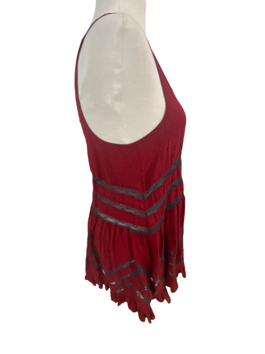 Small Intimately Free People Red Gray Voile Lace Trapeze Slip Dress