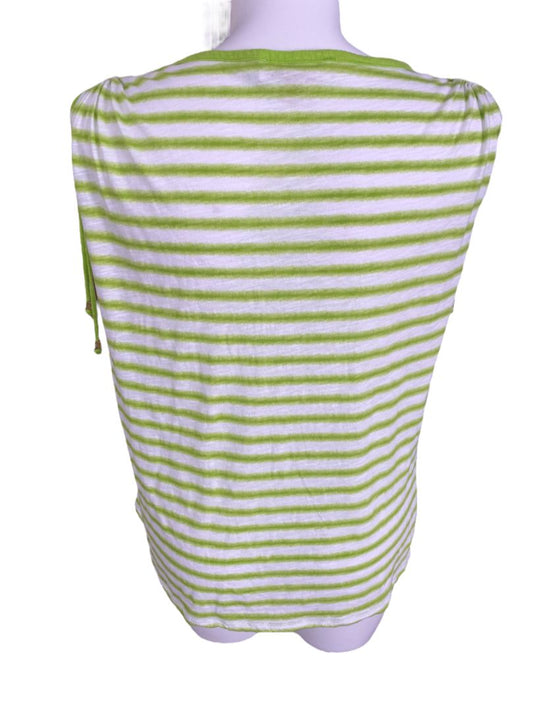 2X Michael Kors Green Striped Sleeves Gathered Tie Shoulder Shirt Blouse
