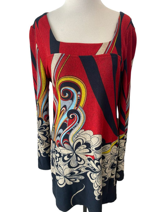 Large Aryeh Square Neck Sweater Dress Beautiful Abstract Pattern