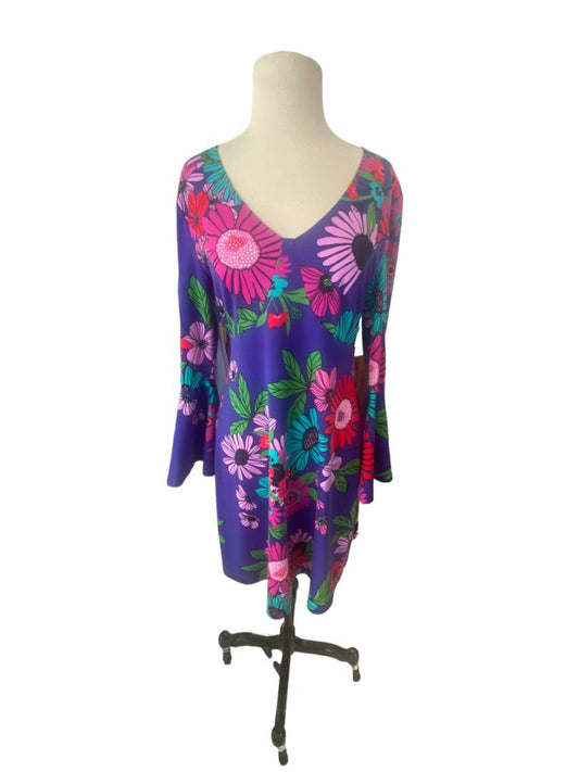 8 Trina Turk Floral 70's Style Dress Tenderness Bell Sleeve Shift Dress