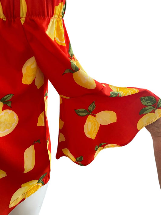 Medium Mudpie Off Shoulder Bell Sleeve Blouse Lemons Red Yellow