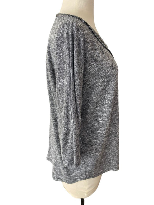 M Juicy Couture Gray Beaded CrissCross V-Neck Blouse Shirt Tunic