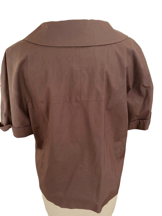 Large Peserico Brown Button Blouse Short Sleeve Peter Pan Collar Lined (Italy 48)